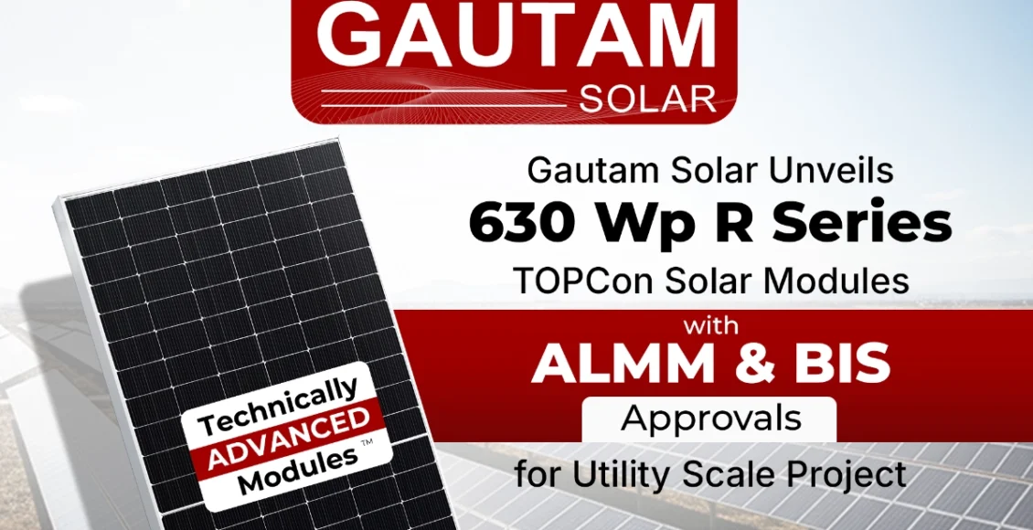 Gautam Solar, one of India’s leading solar module manufacturers, has unveiled its 630Wp R-Series TOPCon Solar Modules, engineered for higher efficiency, durability, and superior energy yield. The new modules are ALMM and BIS approved, ensuring compliance for government projects and large-scale tenders, while meeting the highest industry standards.