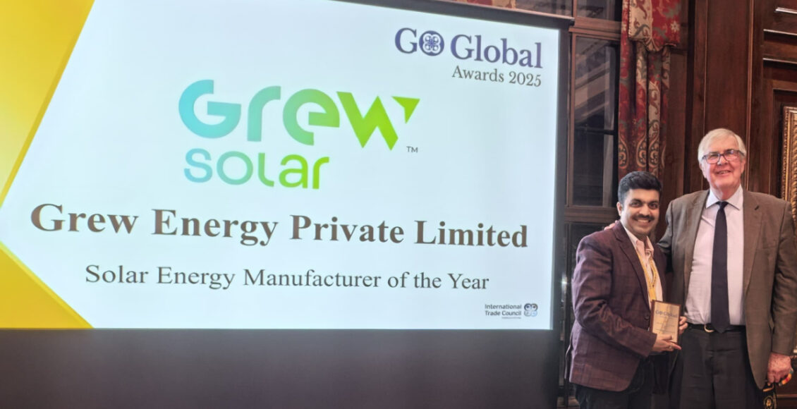 GREW Solar, one of India’s fastest-growing solar PV manufacturers, has been honored the ‘Solar Energy Manufacturer of the Year 2025’ at the Go Global Awards ceremony held by The International Trade Council at the House of Lords, London, United Kingdom. This recognition highlights the company’s rapid ascension and innovation in the solar energy industry, marking a significant milestone in its journey.