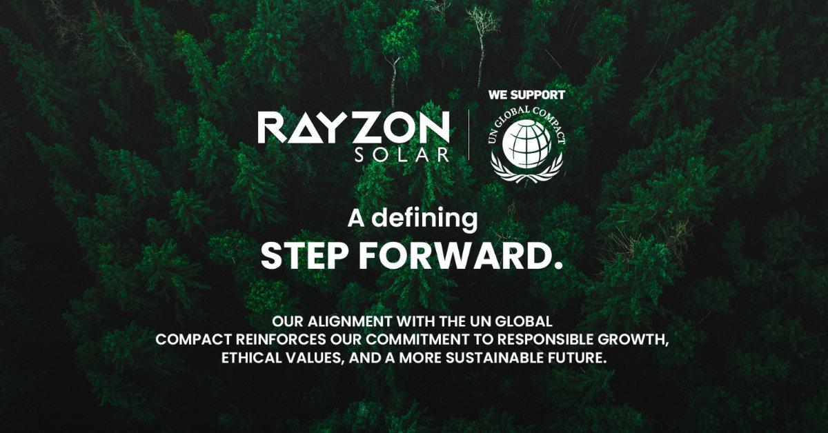 By committing to the UN Global Compact, RAYZON Solar joins a global network of over 20,000 forward-thinking companies dedicated to taking responsible business action to create sustainable world.